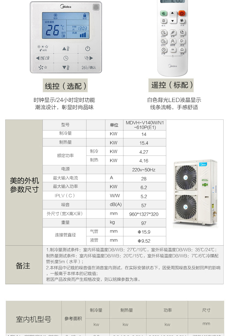 型號(hào): Midea/美的MDVH-V140W/N1-612P(E1)一拖四