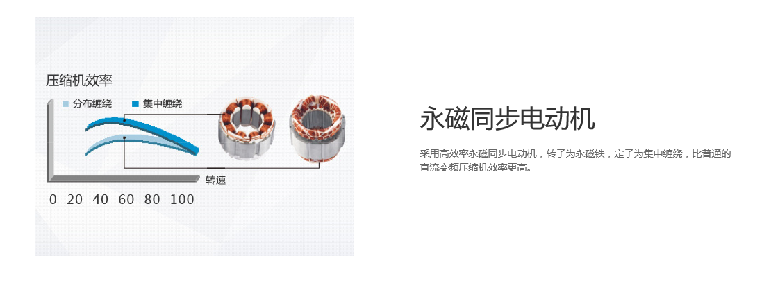 直流變頻技術(shù)、直流變頻壓縮機、永磁同步電動機、智能除霜、180°正弦波直流變速技術(shù)